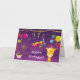 Kort för hälsning för födelsedag för för söt, rolig & färgrik anpassade purpurfärgat för flickor med en gullig tecknadgiraff, nätt flygrosor och gultleksakflygplan som bär en gåva, och raddaballonger & banderoller och muffin med stearinljuset - www.vectoropenstock.