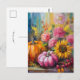 En livfull, modern abstrakt målning som visar en lekfull anordning av pumpor, solrosor och annan höstlig lövverk. Rika höstfärger som bränt orange, djupa röda, rosa och gyllene gula blandas med mjuka penseldrag och djärva färgsprut. Den abstrakta stilen ger en samtida prägel åt det traditionella höstskördetemat, och fångar årstidens värme och skönhet i en livlig, konstnärlig komposition.