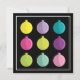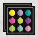 Ett djärvt och modernt raster av nio färgadprydnadar gör ljust ett grafiskt påstående på denna samtidaa julfestinbjudan.