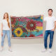 Ge varje vardagsrum en stöt av kreativ energi med detta slående botaniska konstverk. Designen visar upp ett djärvt samspel mellan solrosor och fantasifulla virvlar i en rik, mättad färgpalett. Perfekt för att tillföra en sofistikerad men lekfull touch till din heminredning eller som en gåva till någon som uppskattar unika handritade illustrationer.