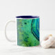 Tyck om en kopp av lysande skönhet! Kulört för Harmon Nelsons för kosmosmuggsärdrag som konstverk kåda fångas av knaprig reflekterande fotografi. Blått, aqua, limefruktgrönt och havet skummar mönster som är som påminner om av en geode. En i en serie vid harmonnelson; köp den hela uppsättningen!