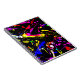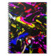 En abstrakt design skapad av riktiga färgstänk, digitalt ändrad och förvrängd för att skapa ett dynamiskt, unikt mönster. De starka färgerna poppar mot den svarta bakgrunden. Det erbjuds här på en anpassningsbar anteckningsbok. Du kan ändra storlek på mönstret och flytta runt det för att skapa en unik anteckningsbok. Du kan även anpassa denna design med text om så önskas.