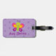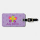Personligbagagemärkre som presenterar en färgrik fjäril med en härlig purpurfärgad blom- bakgrund. Gullig och rolig design för sakkunniga för flickor. Beställnings- monogrammed gåva.