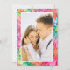 Färgrik modern tropisk akvarellblomma Bröllopsfoto Spara datumet har färgrika akvarell tropiska blommor i rosa, lila, orange, grön och turkos. Lägg till din anpassade Spara datumet-inbjudan information i ramen i elegant vit kalligrafi skrifttyp. På baksidan lägg till ditt favoritfoto. Anpassa genom att redigera texten i textrutorna. Designad för dig av Evco Studio www.zazzle.com/store/evcostudio