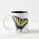 Original- konstdesign av en tigerSwallowtail fjäril på en kvalitets- och anpassademugg vid studion för två spinnakatter.