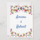Vacker bröllopsmexikansk Otomi-mönster, söta blommor och djur, färgrik