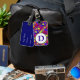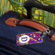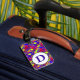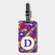 Färgrik popkonst. Den abstrakt designen vid den Alma bunten i livliga färger med brev D.It kan ändras lätt nu. Skämtsam mönsterdesign med retro känselförnimmelse. Skräddarsy nu båda sidor av denna bagagemärkre. Planlägg vid den Alma bunten.