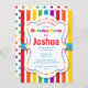 Gör din födelsedagsfest färgrik och roligt med denna roliga inbjudan! Särdragregnbågen görar randig och pricker.