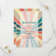 En vacker 70-talsinspirerad färgrik retro regnbåge solstråle design. Ett minimalistiskt vintage utseende bröllop rädda datum kort med groovy mönster och retro färgpalett för alla som älskar randiga mönster, retro färgpalett slitna designs etc. Matchande bröllopsinbjudningar och andra brevpapper finns också tillgängliga.