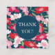 Färgrikt rött blommigt tack-kort med fritt utrymme inkluderar ett vackert rött och rosa illustrerat blommigt mönster på en blå bakgrund och anpassningsbar tacktext. Baksidan är pastellrosa med plats att skriva ett personligt tackmeddelande, eller lämna tomt.