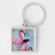 Färgrik rosa flamingo akvarell konst fyrkantig silverfärgad nyckelring