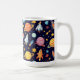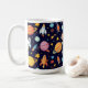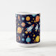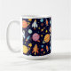 Livslevande sömlöst mönster som visar raketer, planeter och stjärnor mot en mörk rymdbakgrund. Perfekt för utbildning, dekoration eller barninriktade universum- och rymdrelaterade designer.