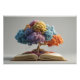 Ett majestätiskt träd växer fram från de uppslagna sidorna i en gammal bok, med en stam som reser sig upp i ett hisnande lövverk av luddiga, juveltonade moln i safir, ametist, magenta, korall, gyllengul, mintgrön och rosafärgad. Gnistrande partiklar svävar nedåt som förtrollat damm och förenar berättandets magi med livlig fantasi och gränslös kreativitet. Perfekt för läshörnor, barnrum, hemmakontor, bibliotek, barnkammare, kreativa ateljéer eller som inspirerande presenter till bokälskare, lärare, författare, drömmare, föräldrar eller vem som helst som tror att berättelser skapar världar.