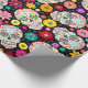 Detta spöklika & stilfulla slående in papper presenterar ett roligt sockerskalle- och blommamönster, perfekten för day of the dead (Diameter de los Muertos), Halloween eller fiesta!