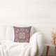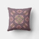 Kastkudde med pastellrosa och grön ornament-grafikillustration på mörk bakgrund.