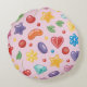 Lysa upp ditt hem med denna runda kudde med ett lekfullt godis- och stjärnmönster på en pastellrosa bakgrund. Perfekt för barnrum, nurseries eller som en glad accent för ditt vardagsrum, denna mjuka och mysiga kudde tillför en rolig, färgrik stämning och gör en vacker present.