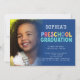 Färgrik text foto förskoleavslutning blå inbjudningar