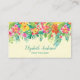 Denna visitkort har en färgrik gräns av tropiska blommor och grönska på en mjuk gul bakgrund med ett subtilt mönster. Baksidaen har rosa flamingos att stå bland tropiska blommor. Denna design är passande för många inklusive blomsterhandlare för användor, händelseplanners, reser affärer, Etc.