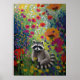 Färgrik tvättbjörn i konst för vildblomsterträdgår poster