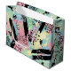 Färgrik urban graffiti-läppteknik presentförpackning med djärva abstrakta block, uttrycksfulla penseldrag, klotter, stjärnor och blandade mediatyper i ljust blått, gult, rosa, orange och svart. Energitisk och kantig med en modern street art-estetik, denna sömlösa design är idealisk för graffiti-konstälskare, maximalistiska stilfans, kreativa tonåringar och samtida konstentusiaster.