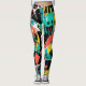 Färgglada urbana graffiti-plåster-mönsterleggings med djärva abstrakta block, uttrycksfulla penseldrag, klotter, stjärnor och blandade mediatyper i ljust blått, gult, rosa, orange och svart. Energisk och kantig med en modern street art-estetik, denna sömlösa design är idealisk för graffiti-konstälskare, maximalistiska stilfans, kreativa tonåringar och samtida konstentusiaster.