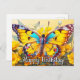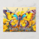 Det här glada födelsedagsgratulationskortet visar en fantasifull illustration av en fjäril i flykt. Du är välkommen att lägga till ditt meddelande på baksidan av detta vykort.
