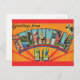 En färgrik, vintage välkomsthälsnings vykort från Greenville, South Carolina som återanvänts som ett nytt vykort.