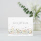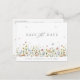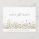 Fånga naturens skönhet på din speciella dag med vårt exklusiva vilda blommor vattenfärg bröllop spara datum vykort. Elegant, unik och blommande med kärlek. Använd textfälten för att anpassa din design med din egen formulering och detaljer. Om du vill ändra typsnitt, färg eller textplacering, klicka helt enkelt på "Anpassa ytterligare"-knappen.