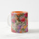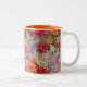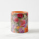Härligt och vibrerande två-tona kaffemuggen som presenterar färgrik vår blommor, planlägger - licensierade diagram.
