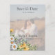 Vår färgrika vildblomme-hjälp- datum- foto är ett underbart sätt att fira och dela din glada händelse. Detta kort har en fantastisk samling vackra akvareller och färgrika vildblommor. Det är perfekt för vår eller sommar. Tänk på utomhus-, trädgårdstema eller destination bröllop