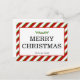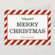 Denna vykort har en färgrik gladlynt stil för klassiker. Den gröna och röda juljärneken, god jul och efternamntext inom ett rött ram- och vitutrymme på röd, grön och vitrand fodrar mönster. Det överför ett varmt sött gladlynt älska julhelghälsningmeddelande. Skräddarsy det för att göra det speciellt.