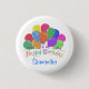 Nätt färgrika firandeballonger och stjärnor på en vitbakgrund med ett grattis på födelsedagenmeddelande i mång--färgad text. Du kan skriva ett beställnings- namn för en personligdesign i blått eller annan kulör text.