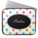 Den färgrika polkaen pricker bärbar datormonogramsleever med ccustomdesignen som skyddar din bärbara elektronik liksom din netbook, bärbar dator eller tablet i stil. Vilden och roligt, denna är en underbar design för damer eller tonåringar.