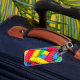 Färgrika bygga kvarter bagagebricka