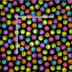 Orangen, rosor, lilor, grönt, blått och gultansikten på en svart bakgrund täcker denna design.