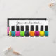 Den färgrika och stilfulla designen presenterar ljusa flaskor av nageln som är polska i rosor, lilor, grönt, orange, gult, blått och grönt. Den perfekta komplimanget till din nagelsalongaffär. Skräddarsy texten till passformen dina behov.