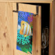 Den original- konstdesignen av wrassen för den Copperband fjärilsfisken och en Klockas blinkeri färgrika koraller av konstnären Carolyn McFann av studion för två spinnakatter som skrivs ut på en kvalitets- maskin-washable kökshandduk för korallrevfisk, fläktar.
