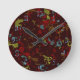 Färgrika löv och blommor mot kamouflage rund klocka