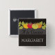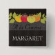 Nätt tomater med den krullande stems och basilikanamn bricka knäppas eller förser med märke för personliga eller privata kockar, caterer eller catering, vegankockar, italienarekockar eller annan mat, matlagning eller kulinarisk affär.