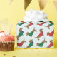 - Gåvan hänger lös, gåvamärkre som slår in papper, silkespapperpapper, satängbandet, klistermärkear