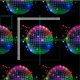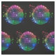 Detta tyg har ror av färgrika diskobollar som skrivs ut på svart tyg.