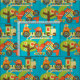 Färgrikt djurt tågtyg som presenterar en tågtemaför barn, som älskar djur och tåg, har en himmelblåttbakgrund med en lokomotiv, och tågbilar med elefanter, tigrar, och giraff, ljusa orange hjärtor, träd och det färgrika tåg spårar!