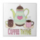 Färgrika roliga diagram av en kaffekruka och två kaffe koppar. Längst ner grafisk text läser, KAFFETIMJAN. Underbar som inramas för ditt kök som en trivet.