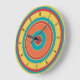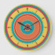 En färgrik design som göras upp av koncentriskt, cirklar i harmoniska färger, med stilfulla tal och timmar och noterar fjäll.