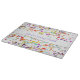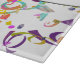 Ett färgrikt konfettidugg av remsor och pricker över vituppsättningen bakgrunden på denna skärbräda. Fyll in mallfält med ett namn, initialer eller annan text, ta bort text- och bandkonstverk eller klicka skräddarsy det! storleksanpassa och färga dig föredrar att välja en stilsortsstil.