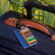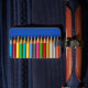 Färgrikt rita kritor på blåttbakgrund bagagebricka