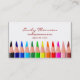 Färgrik lärarevisitkort, med diagram av färgpennor som fodrar grunden av kortet. Baken är designen som ett förälder-/läraretidsbeställningskort. All text är anpassadet som passar dina behov. Underbaren för någon lärare eller handleder.