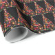 Sjal som speciell julgåva i denna av ett snällt slående in papper i ett färgrikt tänt julgranmönster mot en chicsvartbakgrund.