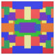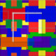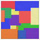 Detta färgrika tyg presenterar en patchworktäckedesign i regnbågefärger med en texturerad look.