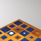 Färgschack abstrakt mönster, från fyrkanter av olika storlek. En enorm solros på hösten som lyfts fram av solnedgången vid förstoringen i konstnärens ögon